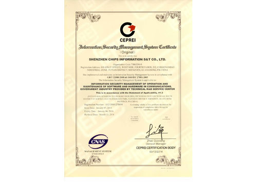 信息安全管理體系認證證書(正本英文)