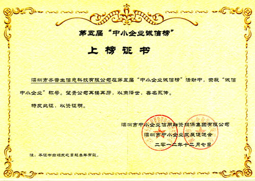 誠信中小企業證書