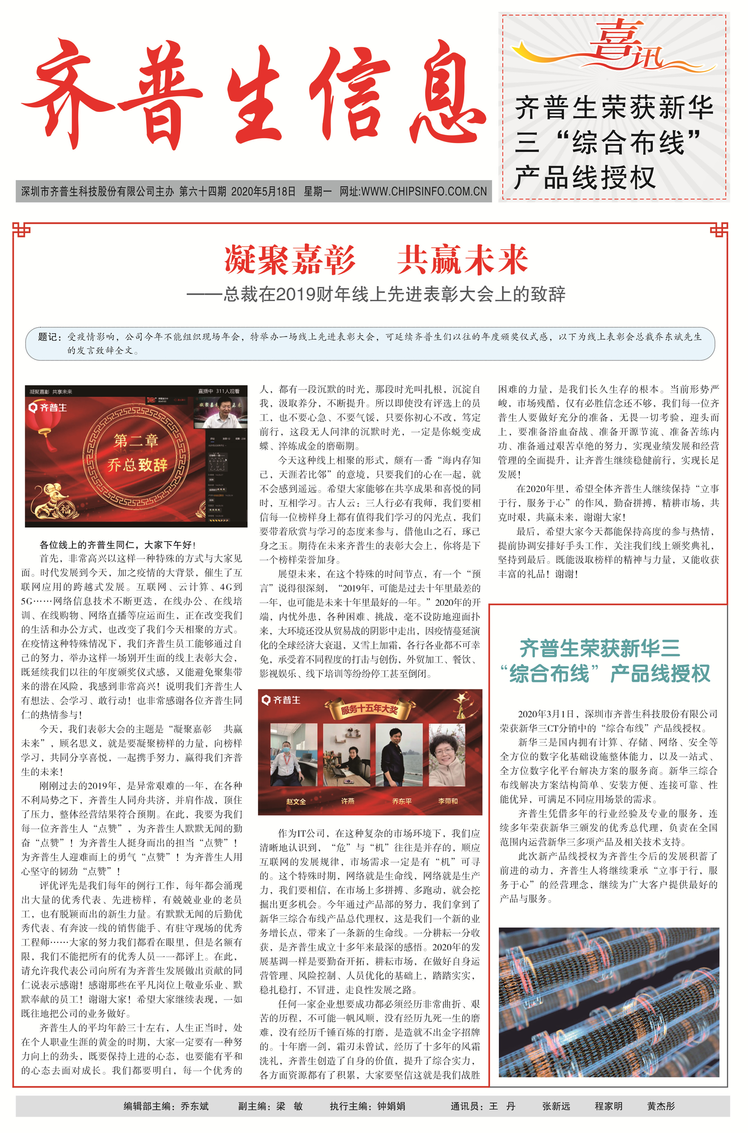 凝聚嘉彰 共贏未來 ——總裁在2019財年線上先進表彰大會上的致辭